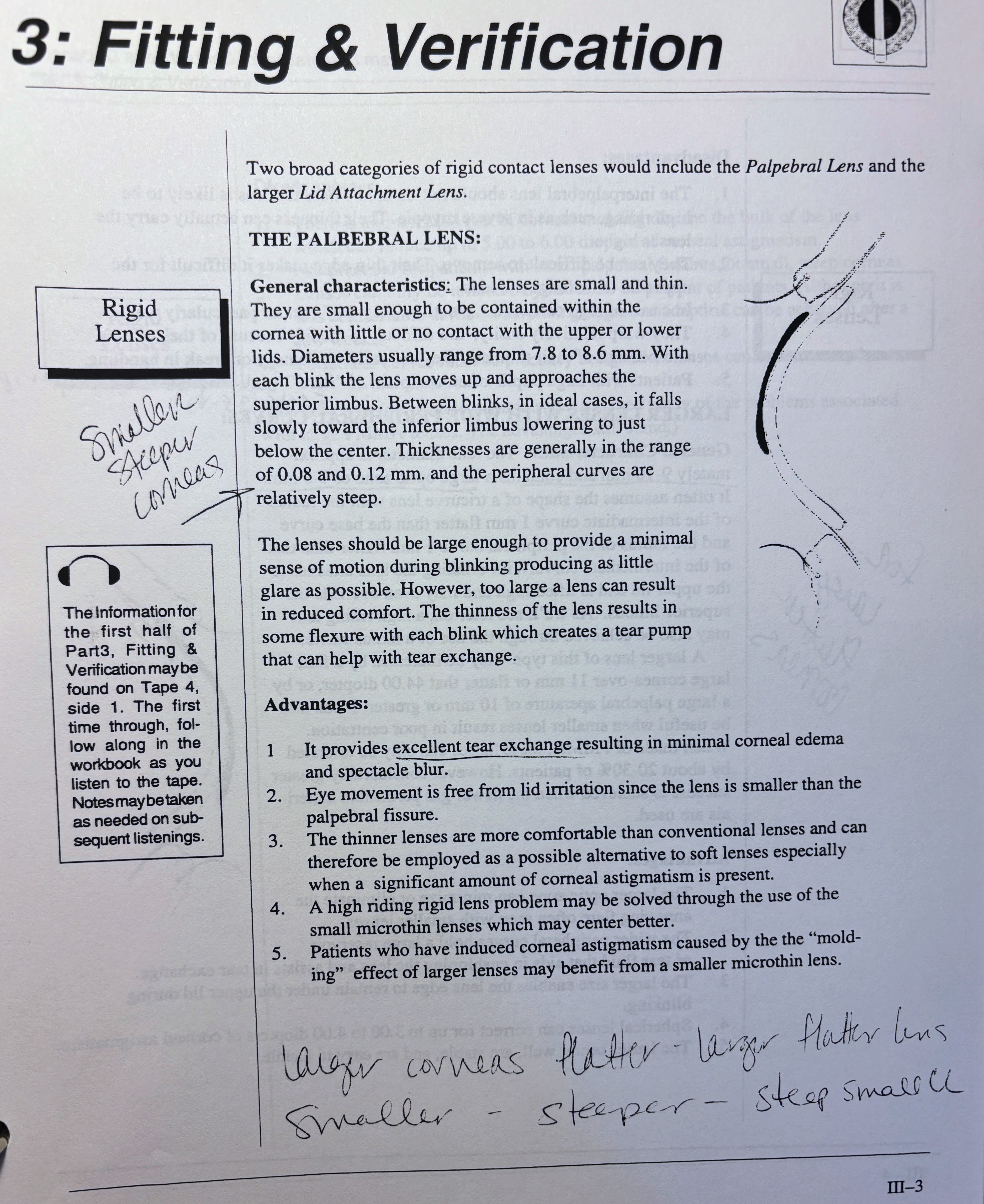 Two broad categories of rigid contact lenses would include the Palpebral Lens and the larger Lid Attachment Lens.